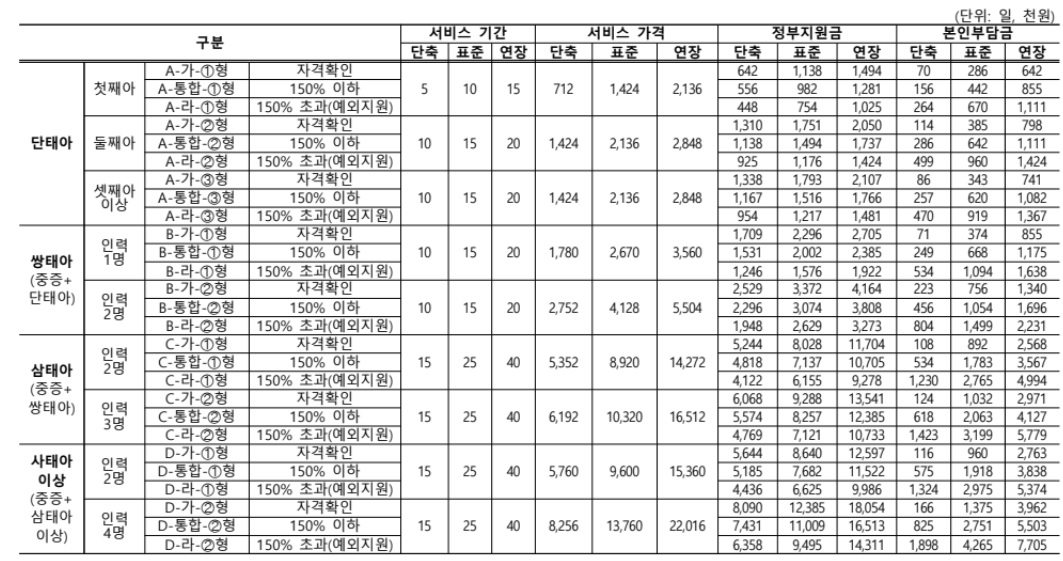 정부지원 산후도우미 비용